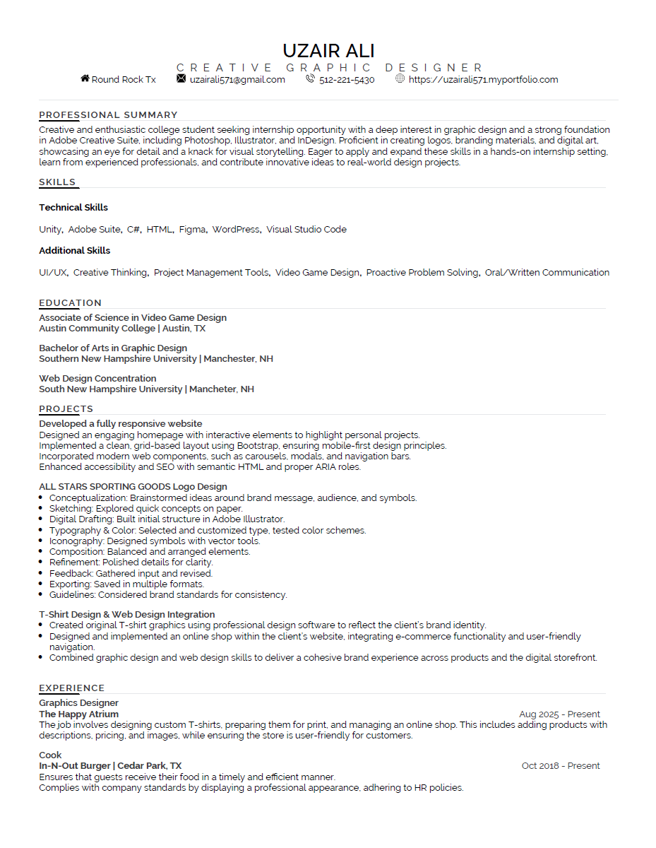 Iām Uzair Ali, a graphic designer with a minor in web design and a background in video game design. I specialize in creating visually strong layouts, creative digital art, and user-friendly designs.